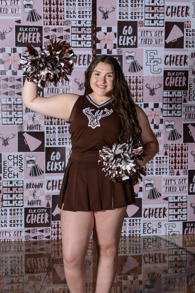 This season’s Elk City cheer squad may be smaller in size, but their energy and closeness make them stand out. “The team’s morale this year has been at an all-time high,” Jones said. “We have a smaller team this cheer season, so we are all very close.” That tight-knit bond has fueled their growth and performance. “The biggest improvement I have seen on the team so far is definitely the unity of our team,” she added.